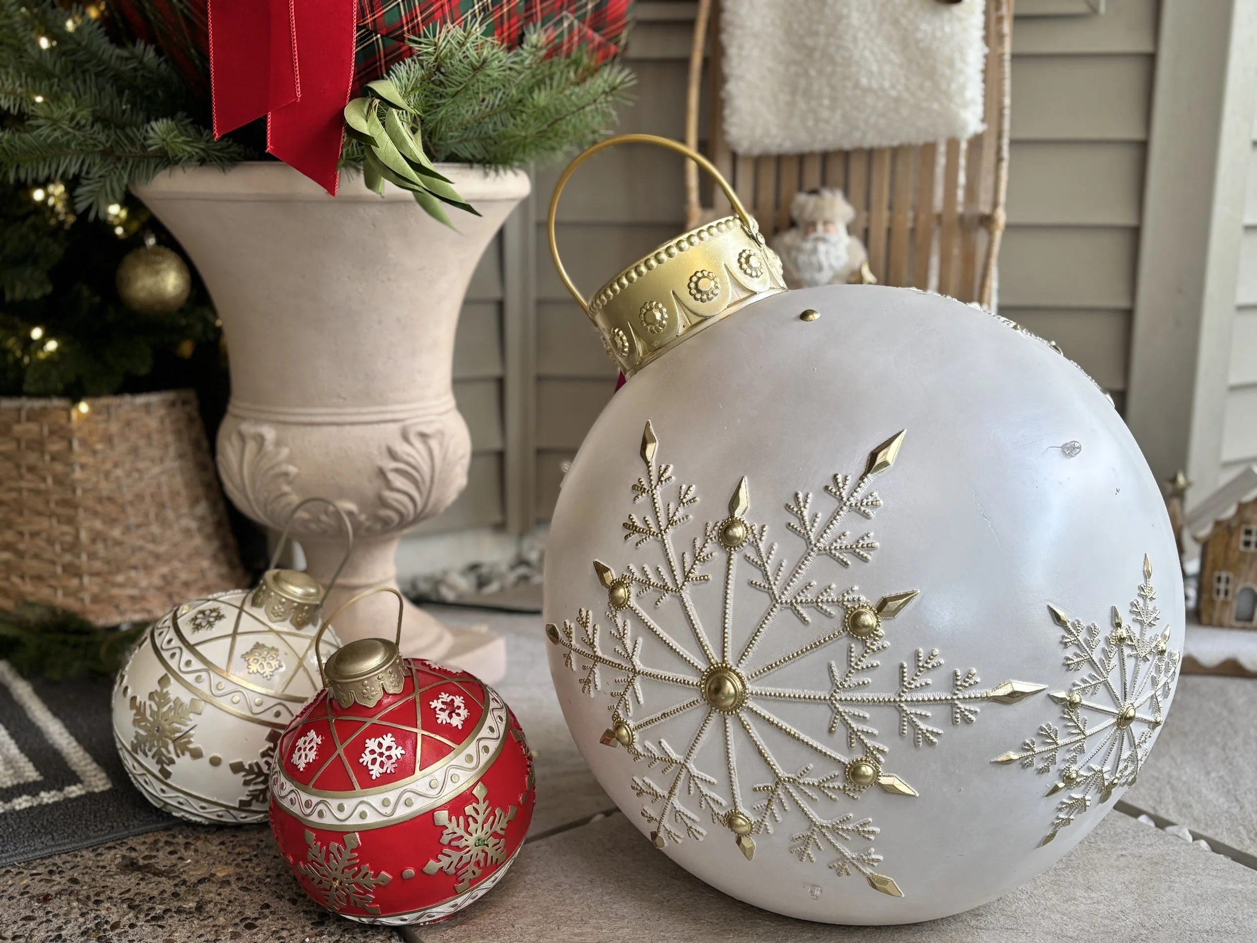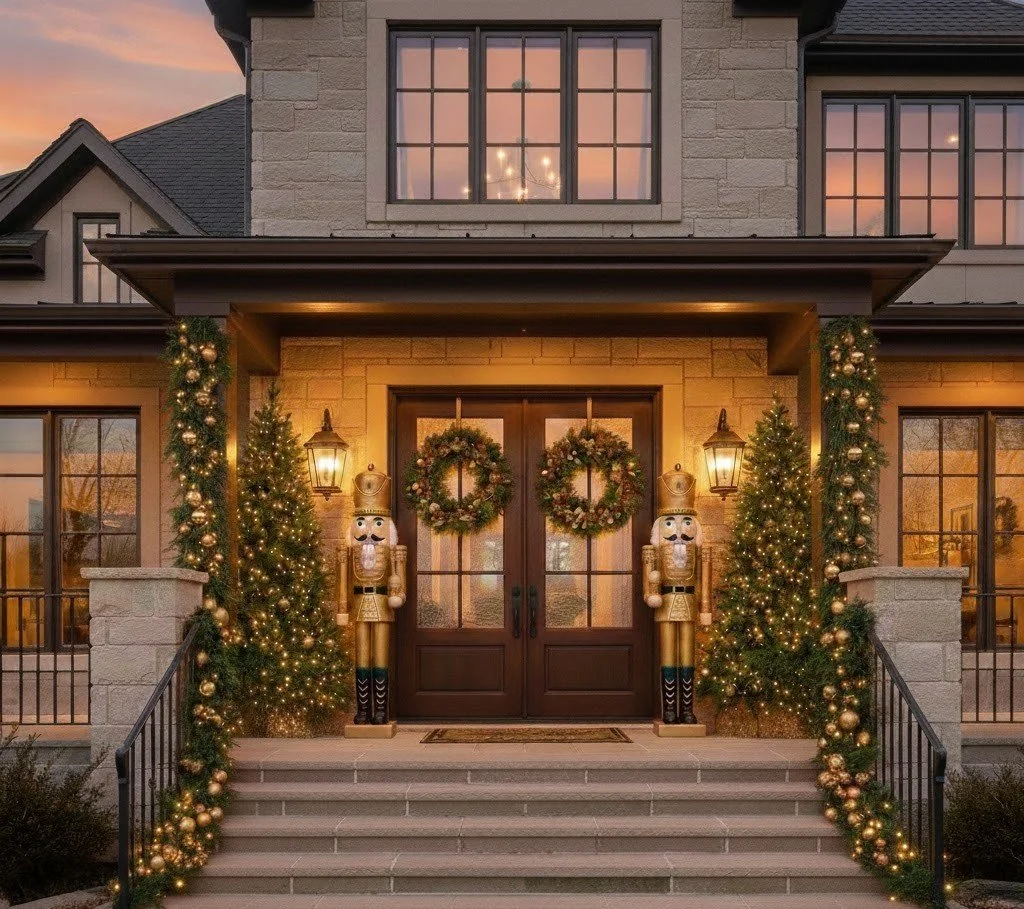 Because homes vary in size, scale, and architectural detail, our packages focus on QUALITY, DESIGN LEVEL AND STYLING COMPLEXITY, while SIZE-based elements (such as wreaths, garlands, greenery, planters and lantern quantities) are customized to your home.